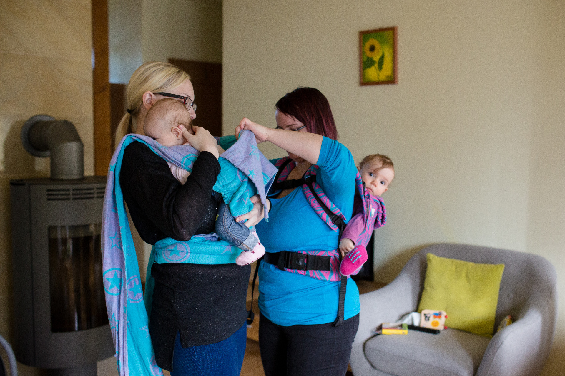 In Kleingruppe mit einer freundlichen Atmosphäre an einem Workshop auf verschieden Themen teilnehmen, übers Babytragen mehr erfahren, Bindeweisen, Tragetücher, Tragehilfen und Materialien kennenlernen, mit anderen Eltern austauschen. Babytragen, Kleinkindertragen, Bindeweisen für Schwangere nach FTZB®, Tragen im Sommer / Winter, Rückentragen, spezielle Bindeweisen.